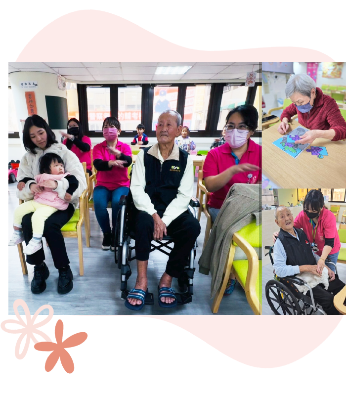 安辰社區長照機構,以蒙特梭利式照護、老幼共學、寵物療法三大特色,為長輩打造充滿活力與尊嚴的晚年生活。延緩長輩退化,促進身心健康,讓長輩在歡樂中重拾生活樂趣。